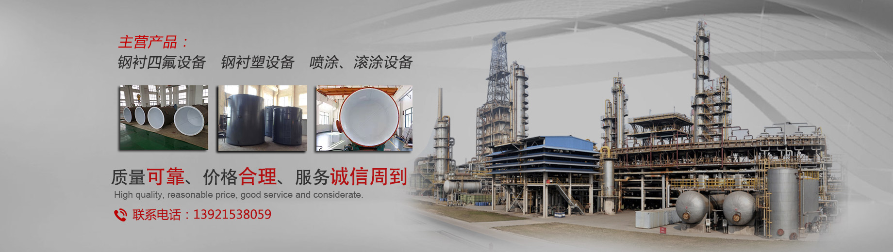 我公司專(zhuān)業(yè)生產(chǎn)防腐設(shè)備,主要產(chǎn)品有:鋼襯四氟、鋼襯四氟儲(chǔ)罐、反應(yīng)釜內(nèi)襯四氟、鋼襯四氟管道,四氟換熱器、PTFE襯里設(shè)備、鋼襯塑儲(chǔ)罐、鋼襯塑管道、攪拌槳等等。產(chǎn)品可應(yīng)用于化工、氯堿、海水淡化、印染、顏料、儲(chǔ)運(yùn)、電廠、稀土、冶金、電子、制藥、釀造等行業(yè)...